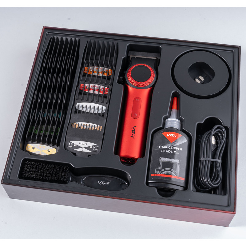 ماشین اصلاح سر حرفه ای وی جی آر مدل V-001 یکی از بهترین ابزارهای موجود برای اصلاح مو است. این دستگاه با توجه به ویژگی های فنی و کاربردی خود، یک انتخاب عالی برای کسانی است که به دنبال کیفیت و دقت در اصلاح مو هستند. این دستگاه با توان مصرفی 10 وات کار می کند و دارای باتری لیتیومی 21700 با ظرفیت 4600 میلی آمپر ساعت است که می تواند تا 260 دقیقه کار کند. مدت زمان لازم برای شارژ دستگاه در حالت شارژ سریع 180 دقیقه و در حالت شارژ آهسته 360 دقیقه است. این ماشین اصلاح، قابلیت تنظیم اندازه اصلاح در سایز های 1، 1.5، 2، 2.5 و 3 میلی متر را دارد. تیغه های این دستگاه از سرامیک ساخته شده اند که باعث می شود عمر طولانی تری داشته باشند و کمتر فرسایش پیدا کنند. این ماشین اصلاح دارای نور LED است که کمک می کند تا بهتر بتوانید اصلاح مو را انجام دهید. همچنین، بیشترین دور موتور این ماشین اصلاح بین 7000 تا 9000 دور بر دقیقه است و امکان تغییر سرعت در 21 سطح مختلف را دارد. این دستگاه دارای نمایشگر LED برای نمایش سرعت و زمان شارژ باقی مانده است. همچنین، دارای پوشش کربن شبه الماس است که دارای خواص منحصر به فردی مانند سختی بالا، مقاومت در برابر سایش و خوردگی است. این ماشین اصلاح با اقلام همراهی مانند برس تمیز کننده، روغن روان کننده، استند شارژر، آداپتور، کابل شارژ تایپ سی و 10 شانه با سایز 1.5، 3، 4.5، 6، 9، 12، 15، 18، 21و 24 میلی متر عرضه می شود. این دستگاه قابل شستشو نمی باشد لذا از غوطه ور کردن آن در آب یا بردن آن زیر دوش خودداری کنید. هرگز از هوای کمپرس شده، پد شستشو، و مایعاتی مانند بنزین یا استون برای تمیزکاری آن استفاده نکنید. این ماشین اصلاح مجهز به باتری قابل شارژ است لذا از قرار دادن دستگاه در مجاورت آتش یا محیط های با دمای بالا خودداری کنید. همچنین این دستگاه دارای محافظت در برابر ولتاژ بیش از حد است و از ولتاژ بیشتر از 6.5 ولت جلوگیری می کند. در هنگام فول شارژ، دستگاه سه بوق میزند تا کاربر را از شارژ کامل دستگاه آگاه کند. نحوه استفاده از دستگاه هم به صورت بی سیم و هم با سیم است. برای استفاده از دستگاه، با زدن دکمه ON/OFF دستگاه روشن شده و با چرخش دستگیره به صورت ساعتگرد/ پادساعتگرد می توانید سرعت دستگاه را افزایش/ کاهش دهید.
