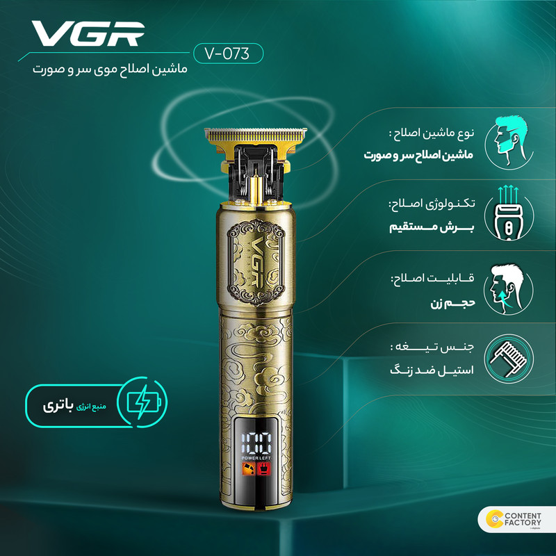 ماشین اصلاح موی سر و صورت وی جی ار مدل V-073 یک دستگاه عالی برای اصلاح موی سر و صورت است. نوع اصلاح این دستگاه حجم زن است، به این معنی که قابلیت اصلاح سر و صورت را دارد. کنولوژی اصلاح وی جی ار مدل V-073 برش مستقیم است که قدرت و دقت اصلاح را به شما میدهد. منبع انرژی این ماشین باتری است و مدت زمان شارژ کامل آن تقریباً 180 دقیقه است. پس از شارژ کامل، میتوانید تا 240 دقیقه از آن استفاده کنید. تیغههای این محصول از جنس استیل ضد زنگ تهیه شدهاند که برای دقت و دوام بالا طراحی شدهاند. وزن این ماشین اصلاح تقریباً 240 گرم است و هنگام استفاده دست را خسته نمی کند. با استفاده از ماشین اصلاح موی سر و صورت وی جی ار مدل V-073 میتوانید به صورت سریع و با دقت بالا موهای سر و صورت خود را اصلاح کنید و به ظاهری آراسته و بهبود یافته دست یابید.